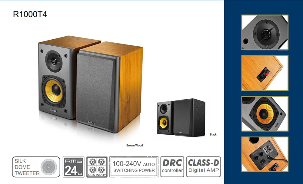 სტუდიური მონიტორი დინამიკი Edifier Studio R1000T4 Active 2.0 Powered Bookshelf Speaker System 24W Total Power Output - 4" Bass Driver Brown